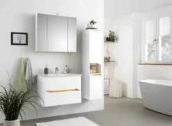 - Contenu de la livraison : Contenu de la LIVRAISON • 1x miroir de salle de bain • 1x meuble sous vasque • 1x meuble midi manuel d’installation siphon et lavabo ne sont pas inclus Attention: Décoration non incluse! Les couleurs et contrastes peuvent différés de la couleur réelle selon les réglages de votre ordinateur.