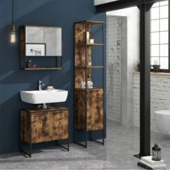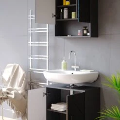 - Contenu de la livraison : Ensemble de salle de bain comprenant 1 colonne de salle de bain, 1 armoire de toilette, 1 meuble sous lavabo, 1 meuble haut et 1 meuble bas